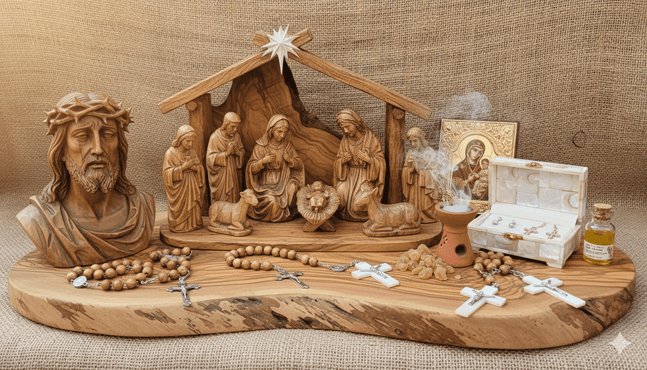 In the heart of Jerusalem & Bethlehem, generations of Christian artisans have been handcrafting meaningful treasures inspired by their faith. From olive wood crosses and nativity sets to rosaries and anointing oils, every piece carries a story of devotion, tradition, and the spirit of the Holy Land.