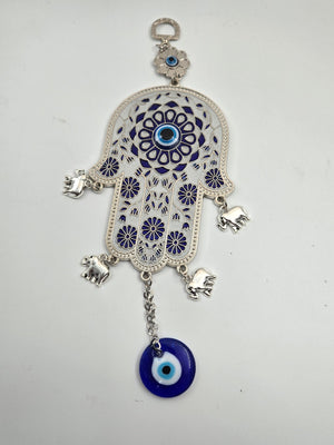 Main de Fatima en émail avec mauvais œil – Amulette suspendue en étain (Main de Marie)