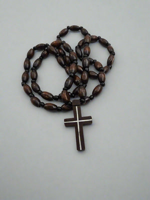 Materials: Holy Land olive wood, silver-plated zinc alloy, waxed-cotton cord